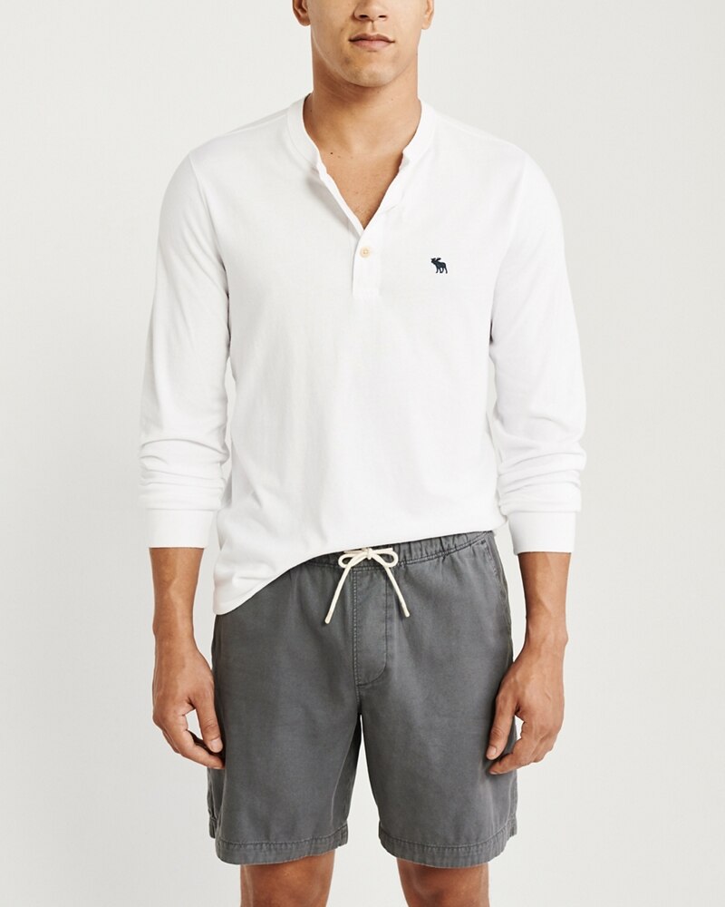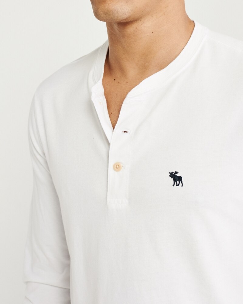 Abercrombie&Fitch 正規品 (アバクロンビー&フィッチ) Moose刺繍 ヘンリーネック Tシャツ (長袖) (ロンT) (Long-Sleeve Icon Henley) メンズ (White) 新品