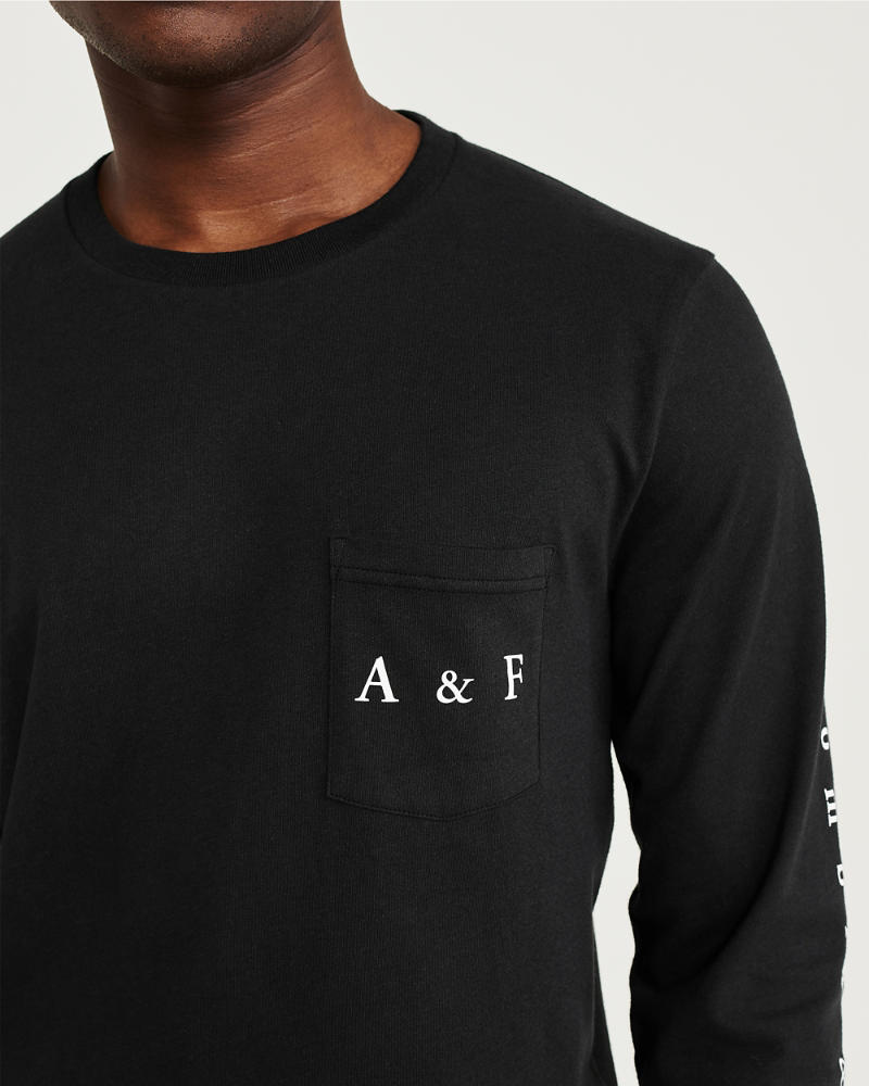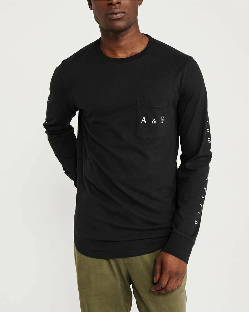 Abercrombie&Fitch (アバクロンビー&フィッチ) ポケット付きロゴプリント長袖Tシャツ (ロンT) (Long-Sleeve Pocket Logo Tee ) メンズ (Black) 新品 SoftA&F